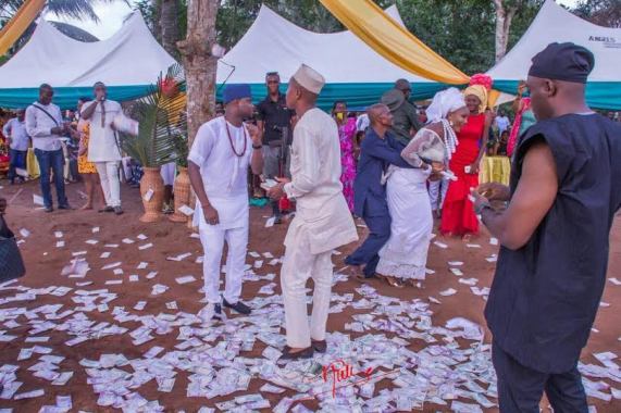 pics from the lavish money spraying display at a wedding in Imo State